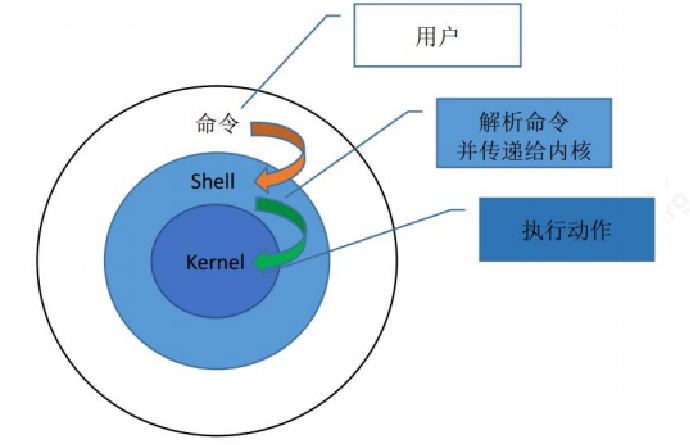 用户 → Shell → Kernel → 硬件